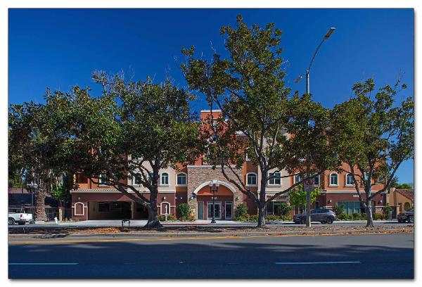 | This is the same building at ground level. The trees are obstructing the facade of the building and there is no reference to the surrounding area. Although this is a nice image, the drone image provides a different perspective. |