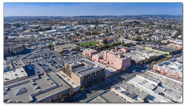 | This 200 foot view shows the property in relationship to the downtown area, major roads, transit and the coastline. Watsonville, California |