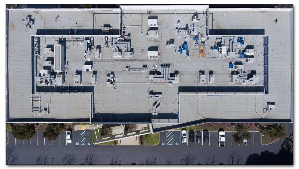 | This is an image from 250 feet above ground to inspect the roof of a commercial building. |